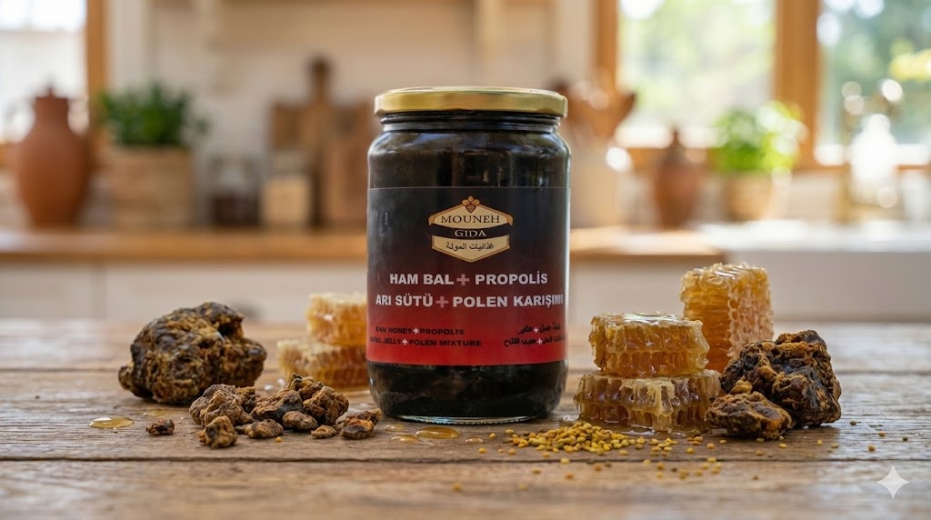 After years of experience in the field of honey and beehive products, Mouneh Gida proudly presents the Royal Honey Blend, carefully prepared using pure mountain honey that is laboratory tested, monitored, and completely free from added sugars and chemical residues.